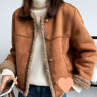 Kurtka damska | z kożuszkiem zapinana na guziki krótka