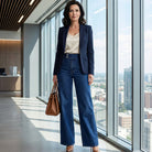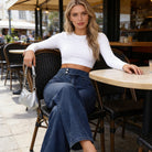 Te szerokie jeansy damskie z wysokim stanem i ozdobnymi guzikami łączą klasyczny denim z nowoczesnym krojem. Solidny materiał dobrze układa się na sylwetce i zapewnia komfort noszenia. Wysoki stan podkreśla talię oraz nadaje proporcji harmonii. Podwójne zapięcie na guziki stanowi subtelny akcent i wzmacnia konstrukcję. Szerokie nogawki tworzą płynną linię i gwarantują swobodę ruchów.