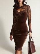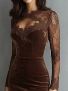 Dodaj swojej garderobie ponadczasowej elegancji dzięki sukience Nadia. Ten wyjątkowy model łączy luksusową, aksamitną tkaninę z delikatną koronką, tworząc stylową i kobiecą całość. Dopasowany krój subtelnie podkreśla sylwetkę, a długie koronkowe rękawy oraz elegancki dekolt zapewniają klasę i wygodę – idealne zarówno na wyjątkowe okazje, jak i eleganckie wyjścia.