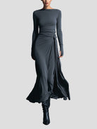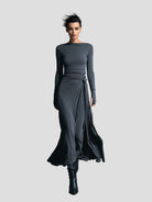 Jej lekko połyskujący materiał i ponadczasowa szarość dają styl, który sprawdza się zarówno na co dzień, jak i podczas wyjątkowych okazji. To sukienka, do której będziesz wracać przez cały sezon.