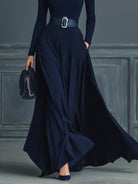 Elegancka, długa dzianinowa sukienka z wysokim kołnierzem i swobodnie opadającą spódnicą w kształcie litery A, idealna na stylowe wieczory.