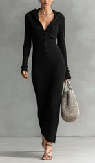 Autumn charm meets soothing comfort in this elegant casual dress. Designed with a half-breasted front, built-in hoodie, and a refined mid-length cut, it feels warm, soft, and naturally calming—ideal for cozy evenings, peaceful sleep routines, casual commuting, and seasonal gifting. The wool-blend fabric offers breathable warmth without heaviness, creating a comfortable experience all day and night.