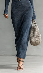 Modna Szara Sukienka Maxi z Długim Rękawem i Fasonem Retro