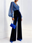 Izabela | Elegancki niebieski kombinezon z siateczką