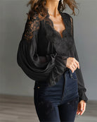 Bluzka damska koronkowa | z dekoltem V i bufiastym rękawem