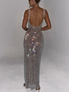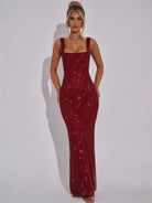 Eaksone - Sukienka Maxi z cekinami i kwadratowym dekoltem