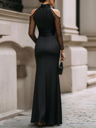 Ta długa sukienka została zaprojektowana z myślą o dopasowaniu i wyraźnej linii ciała. Gładka baza materiałowa miękko przylega, zapewniając stabilne podtrzymanie. Delikatny tiul w górnej części wprowadza lekkość i przejrzystość bez nadmiaru. Odkryte ramiona budują zbalansowaną proporcję między formą a detalem. Całość zachowuje spójny, uporządkowany charakter.